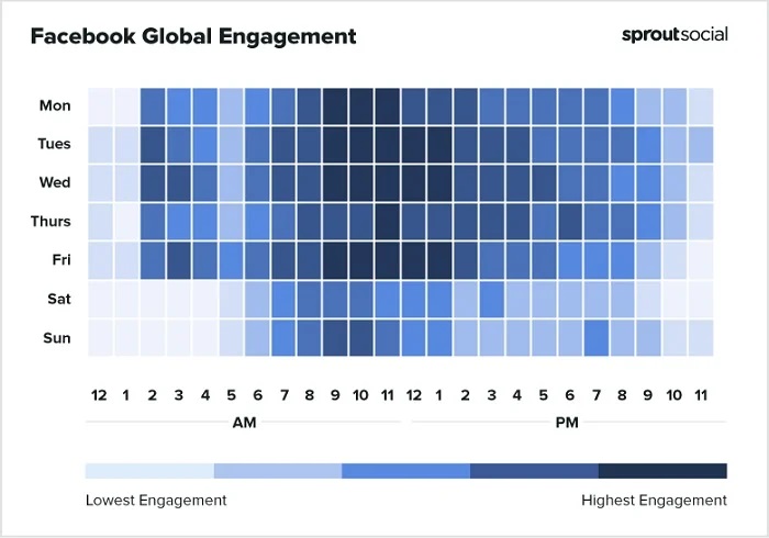 A Sprout Social egy 20 ezer mintás kutatás segítségével vizsgálták, hogy az ügyfelek mikor posztolnak és azok a posztok mennyire teljesítenek jól vagy éppen rosszul. Ez alapján a kutatás alapján kedden, szerdán és pénteken délelőtt 9 és délután 13 óra között teljesítenek a legjobban a bejegyzések, míg a hétvége a legrosszabb.